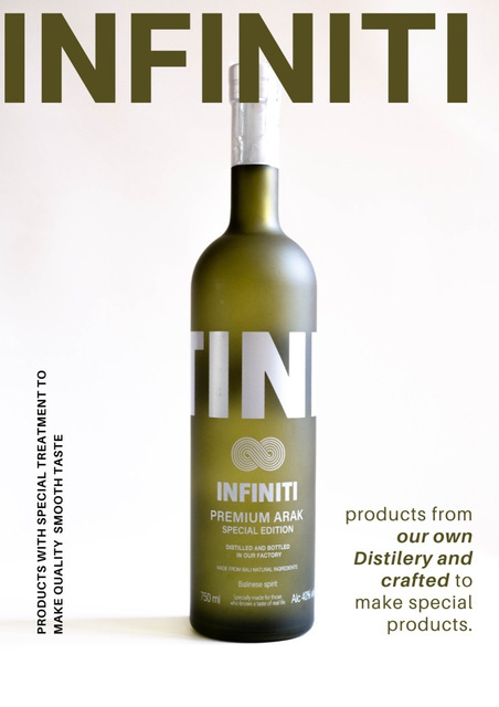 Handcrafted with only natural and premium ingredients. Bottled with the finest distillation technology in a local distillery in the heart of Bali. Specially produced with high quality to ensure purity and to bring the best taste in every sip.